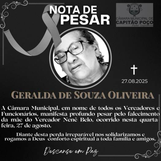 Em respeito ao falecimento da mãe do Vereador Nenê Belo